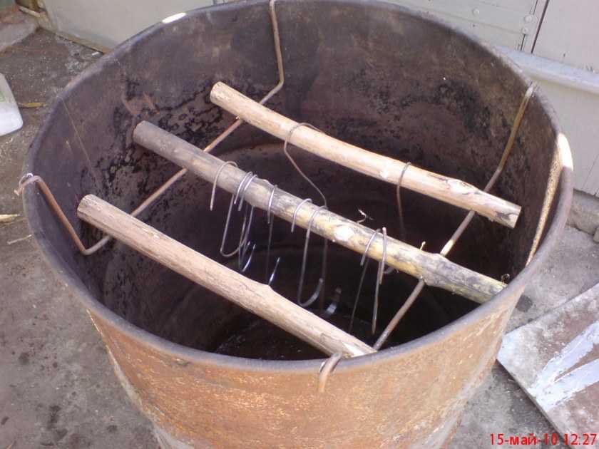 Такую коптилку легко собирать и разбирать, перенося, если нужно, с места на место.