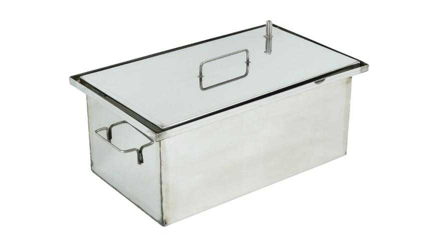 Такие устройства особенно ценят заядлые рыбаки: пресноводная рыба иногда имеет специфический запах, который при горячем копчении на щепе из фруктовых деревьев (сливы, яблони, вишни) исчезает и сменяется великолепным ароматом. Самая простая коптильня напоминает ящик из нержавеющей стали; внутри находятся съемное дно (оно же — поддон для жира), под которое закладывается щепа, и решетка, на которую укладывается продукт.
