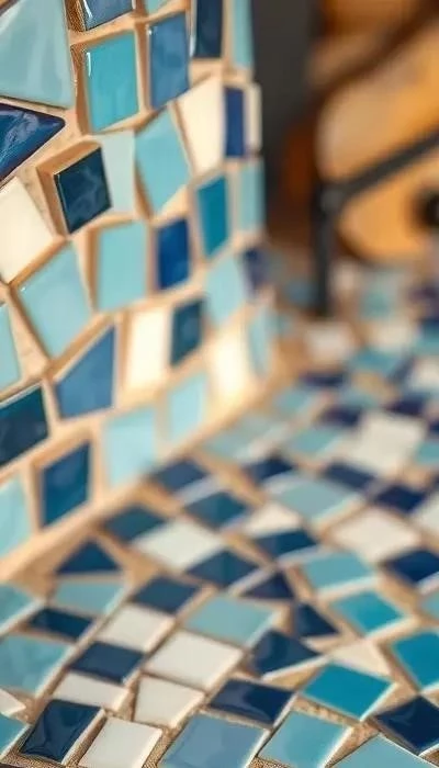 Наиболее выигрышно мозаика из битой плитки сочетается со стилями бохо, рустик, кантри и средиземноморским. Эти стили подчеркивают естественность и неформальность, что идеально соответствует характеру мозаики из осколков. В интерьерах в стиле бохо мозаика может быть яркой и многоцветной, в рустике – более сдержанной и натуральной, а в средиземноморском – с использованием оттенков синего и белого. Укладка мозаики на камин в этих стилях создает атмосферу уюта и тепла.