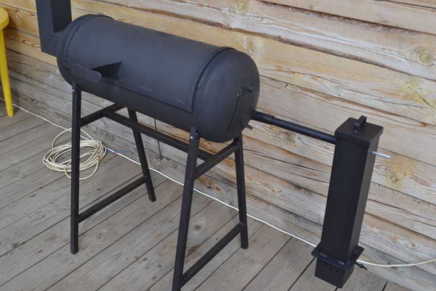 Это очень простая конструкция, которая обычно бывает стальной или выполненной из чугуна. Имеет она форму прямоугольника с небольшими отверстиями внизу. Готовка мяса происходит на шампурах. Однако регулировать высоту их размещения невозможно. Из-за этого жарить мясо или овощи на шампуре не очень удобно. Такой вариант больше подходит тем, кто приезжает отдыхать на участок время от времени. В других случаях лучше установить что-то более капитальное.