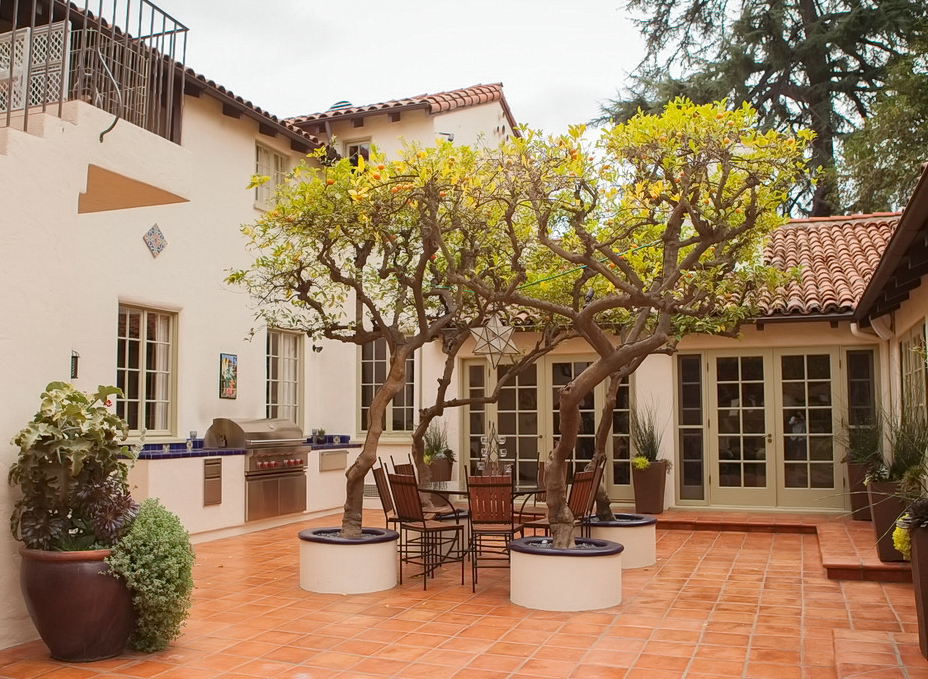 Выделить на террасе зону для барбекю под открытым небом. Терраса может быть частично крытой, а для открытой можно предусмотреть возможность установки тента или зонта над обеденной зоной.
