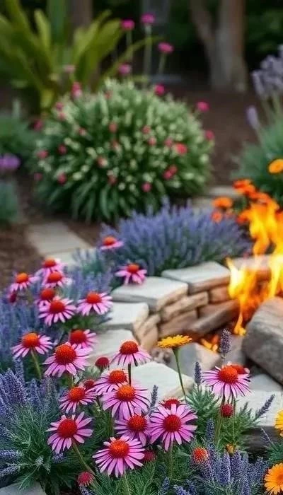 Для создания цветника вокруг очага, особенно открытого, выбирайте растения, способные выдерживать высокие температуры и недостаток влаги. К таким относятся лаванда, розмарин, тимьян, седум и очиток. Эти растения не только жаростойки, но и обладают приятным ароматом.