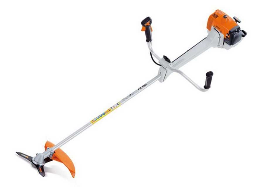 Самый мощный триммер в рейтинге произведен брендом Stihl. Агрегат с двуручной рукояткой предназначен для обслуживания лесных хозяйств, садовых работ. Триммер безупречно справляется с камышом, свалявшейся травой, крапивой, лопухами, при установке ножа «осилит» молодые деревья и сучковатый кустарник. Техническая сторона: легкий и безотказный старт, надежные крепления, компенсатор Stihl предупреждает перенасыщение смеси, поддерживая постоянную мощность. Завершает картину электронная система зажигания, ручной топливный насос и грамотное управление, сосредоточенное на одной рукоятке.