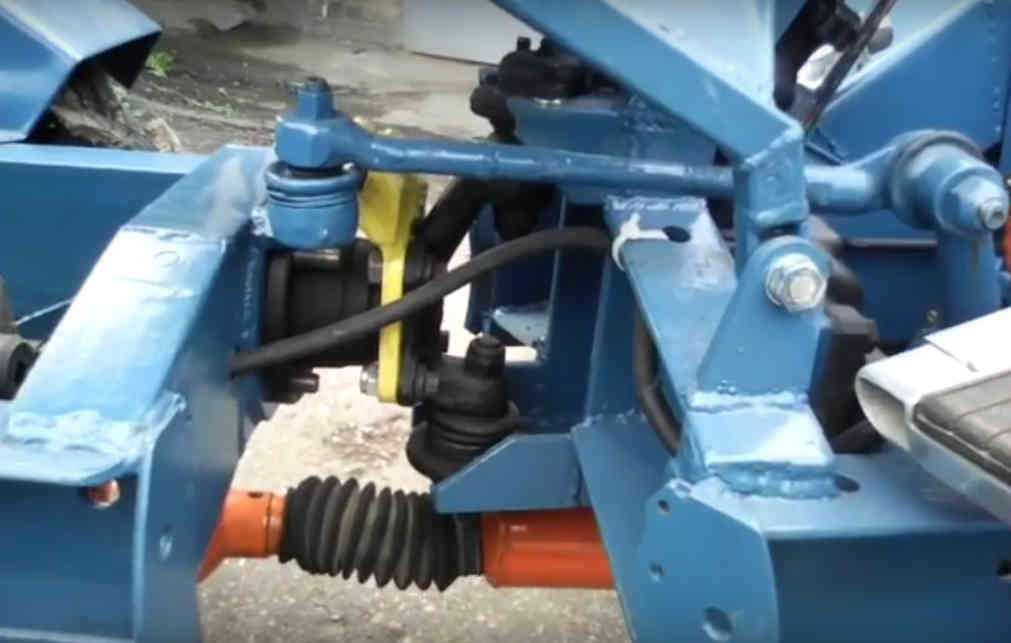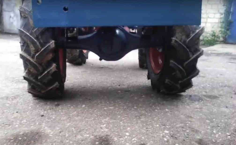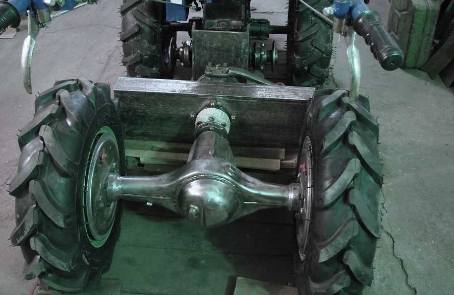 Для изготовления самодельного трактора были применены наиболее доступные узлы и агрегаты: Передний и задний мост взяты от «Жигуля» и урезаны до колеи шириной 70 см.