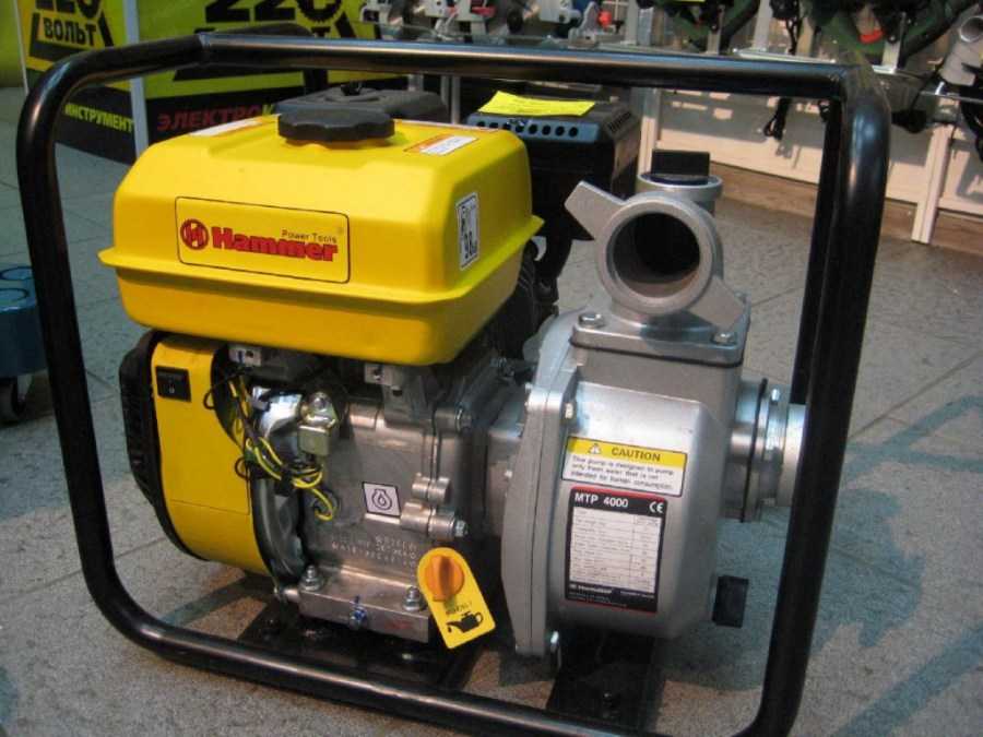 - бензиновые мотопомпы характеризуются более низкой стоимостью, могут функционировать на разных мощностях, имеют небольшой размер и низкий порог шума. Обязательное условие при эксплуатации — использовать только качественный бензин;