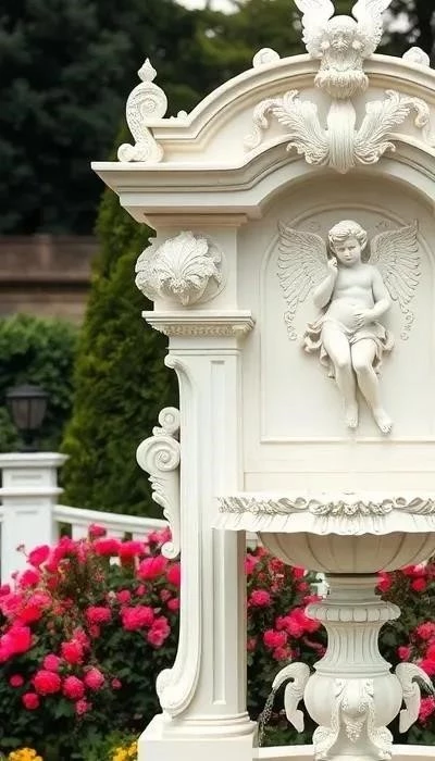 Скульптуры – неотъемлемая часть сада рококо. Они могут быть выполнены из мрамора, бронзы или других материалов. Скульптуры часто размещают в нишах, на постаментах или среди цветочных клумб, создавая неожиданные и завораживающие композиции. Скульптуры и фонтаны: воплощение роскоши и изящества, подчеркивающее статус владельца сада.
