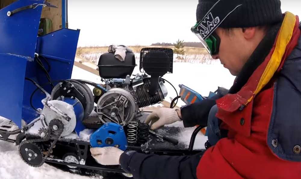 - При развитии оборотов двигателя не наблюдается движение мотобуксировщика. В этом случае стоит проверить, не порван ли ремень, не перевернулся ли гусеничный каток от механического повреждения. Устранение неполадки подразумевает замену ремня и возврат катка в первоначальное положение.