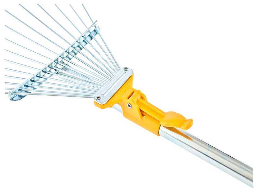 Как правило, садоводы покупают веерные грабли садовые с черенком. Материал, который используется для изготовления черенка и его длина — это факторы, определяющие функциональность и удобство работы с граблями. Если черенок будет слишком длинным или коротким, работать с инструментом будет очень неудобно. Наиболее оптимальной длиной является такая, когда черенок достает до подмышек человека.
