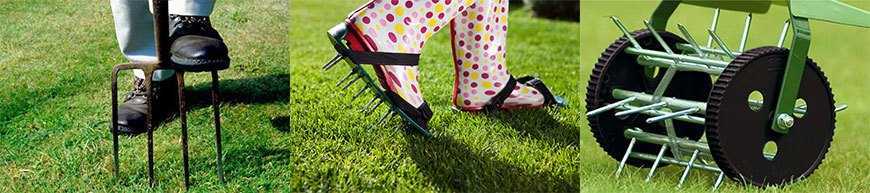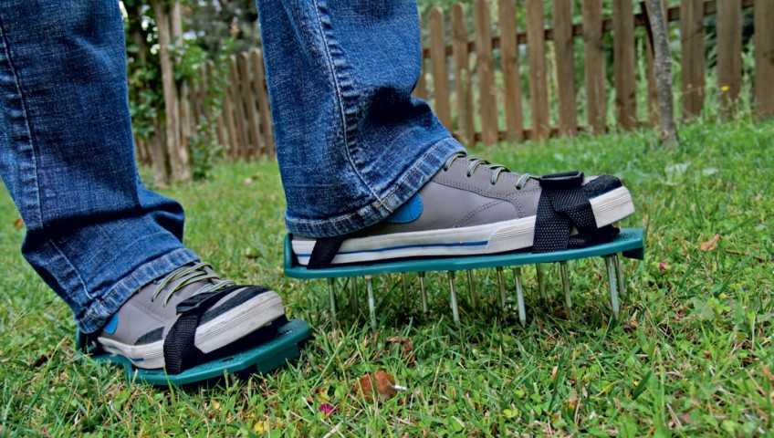 Также существуют оригинальные «подошвы-аэраторы», в которых достаточно просто ходить по траве, а зубья вмонтированы в «ботинки».