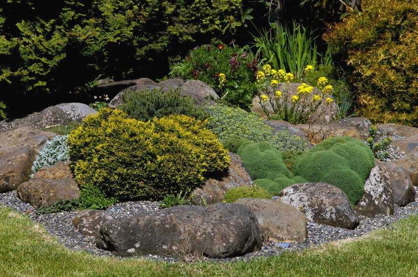 Какой бы вид каменистой клумбы вы не выбрали, понадобится стандартный набор растений и камней.