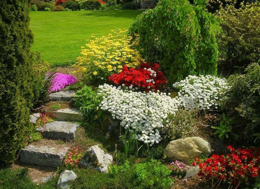 Альпийская горка – это один из приемов ландшафтного дизайна, который создается на ровном месте или небольшой возвышенности, имитируя с помощью камней различной величины горные склоны, поросшие карликовыми кустарниками и многолетними цветущими растениями. Вариации для создания альпийского цветника очень разнообразны – помимо растений, они могут содержать внутри композиции небольшие водоемы, мостики, садовые скульптуры. Очень необычно и красиво смотрятся горки, выполненные в виде ярусов-терасс, а также с применением подсветки в вечернее и ночное время.