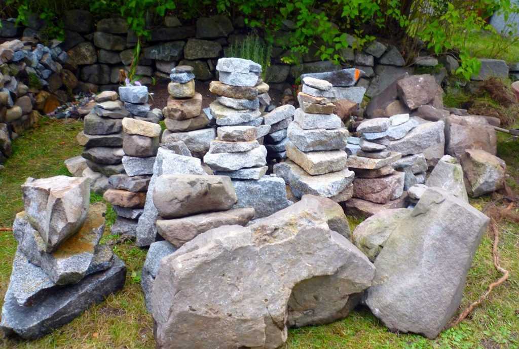 камни любой фактуры укладывают для устойчивости и большей декоративности самой широкой гранью к земле
