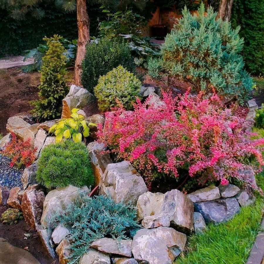 К высадке кустарников и деревьев нужно подходить очень осторожно: они вырастают, все-таки приличными по высоте, попытки их обрезать только вредят внешнему виду. Если хотите, ищите карликовые разновидности, но уточняйте их рост