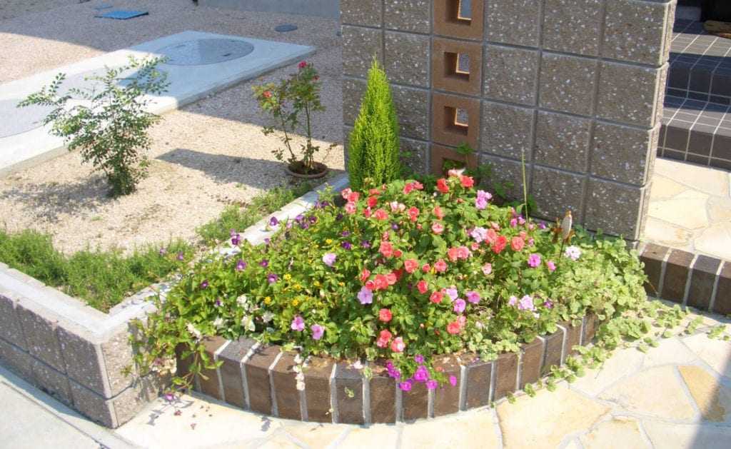 Нелепо будет смотреться такой вариант и рядом с миксами цветов. Их вообще можно обрамить контуром, выложенной из мелкой, крупной, яркой плитки.