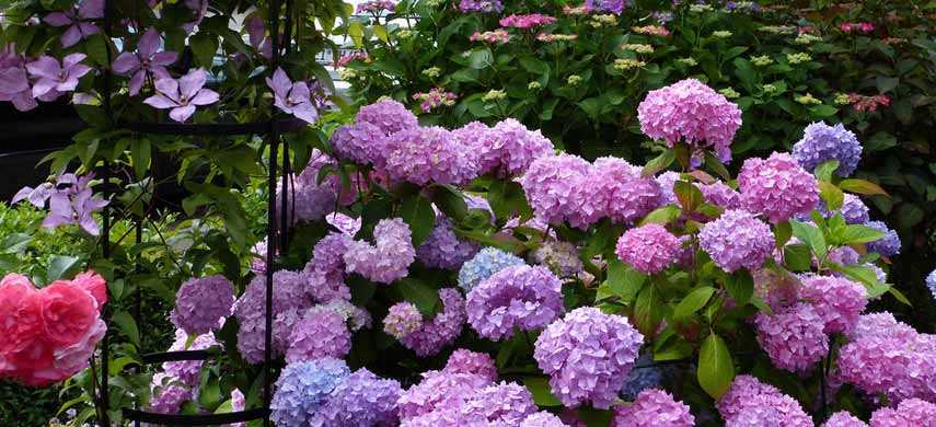Большинство видов и сортов гортензии предпочитают рассеянное освещение, ажурную полутень. Им нужно место, которое освещено в течение большей части дня, но в то же время притенено от прямых солнечных лучей. Поэтому гортензии хорошо растут там, где в полуденные часы на них падает не очень густая тень от листвы деревьев. Однако не следует сажать их в непосредственной близости от деревьев, чтобы растения не соперничали за питание и влагу – у гортензии разветвленная корневая система, и площадь питания достаточно велика. Самой светолюбивой является гортензия черешковая, ее можно сажать на открытом месте.