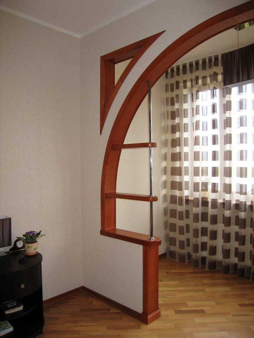 - Арочная конструкция в стиле модерн напоминает эллипс, однако с острыми углами. Такая форма чаще всего делается из дерева и отлично смотрится почти в любом современном интерьере. Она сочетает в себе острые углы и округлую форму, поэтому гармонировать будет как с мягкими обтекаемыми формами, так и с геометрическими элементами современной мебели. Данная модель считается наилучшим вариантом для обстановки в стиле эклектика.