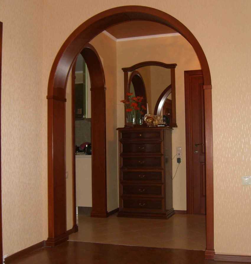 - Арка в романтическом стиле преимущественно подходит для широких дверных проемов. Она представляет собой модификацию портала: середина у такой модели прямая и параллельна полу, однако углы скруглены. Гипсовые варианты подходят для классических интерьеров, а деревянные модели хорошо вписываются в стиль кантри и колониальный.