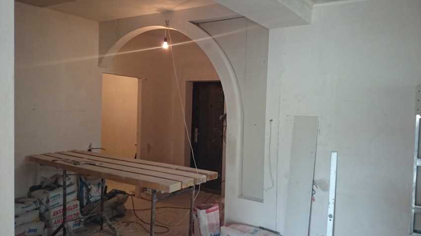 - Арка в форме эллипса более широкая и низкая. Она отлично подходит для небольших комнат, позволяя визуально расширить пространство. Тем не менее, стоит учитывать, что не всегда такая арка вписывается в узкий дверной проем. Очень часто ее ставят для разделения пространства в комнате, а не используют вместо двери.