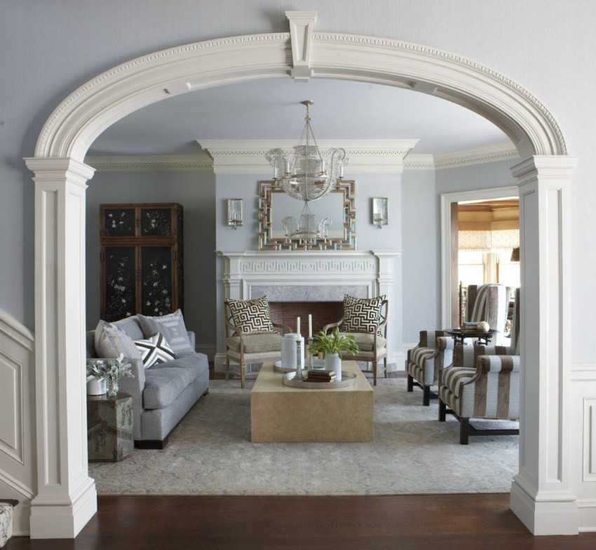 Современные арки крайне разнообразны. Иногда это межкомнатные модели, так называемые арки на двери, а иногда варианты, которые можно установить прямо посреди комнаты. Различные варианты будут смотреться актуально и в квартире, и в кирпичном или деревянном доме.