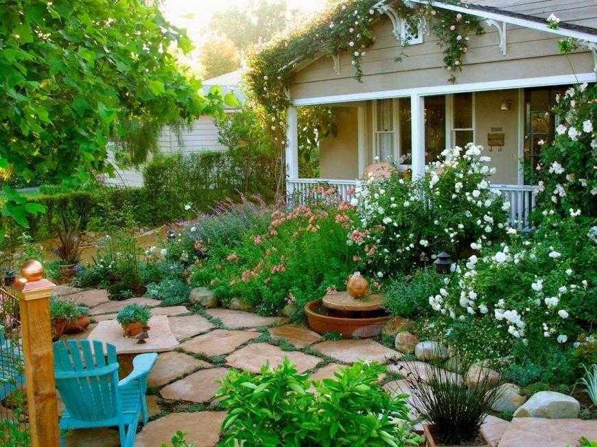 - Стиль прованс. Он объединяет в себе романтику французских садов, американский кантри, образ сада из итальянской глубинки и другие «провинциальные» мотивы. Приветствуются натуральные материалы, аксессуары из текстиля, садовые фигурки, обилие мелких цветов.