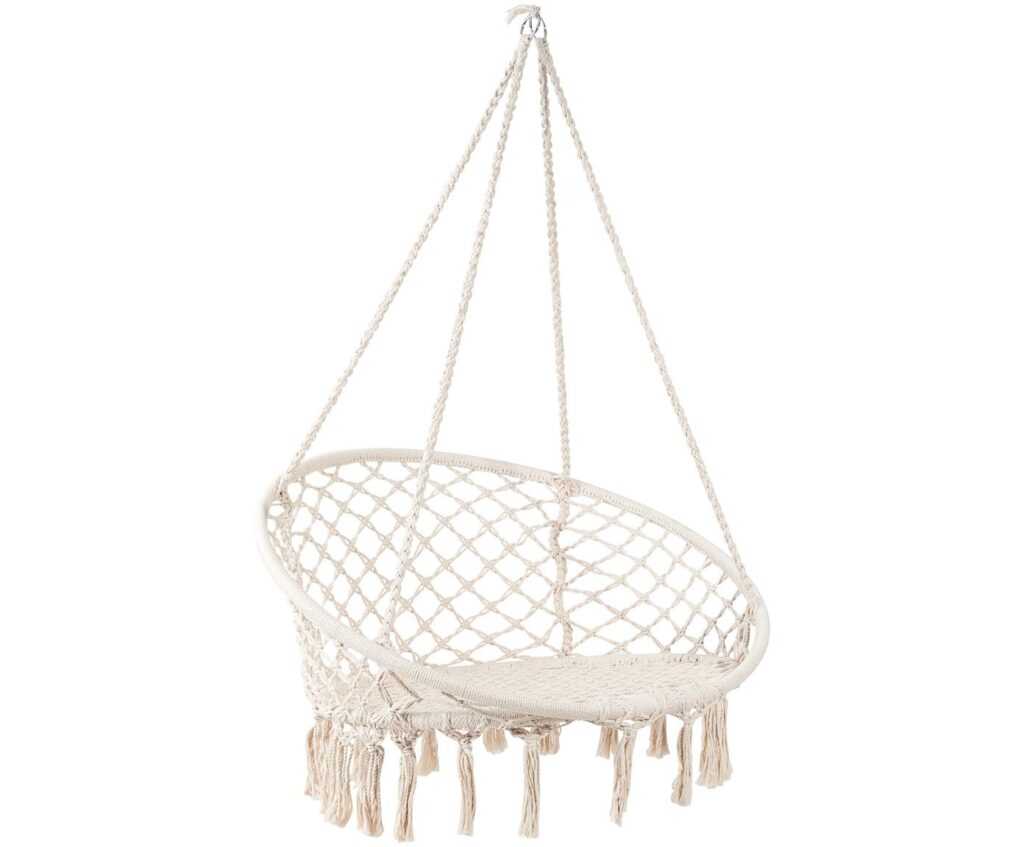Кресло-гамак (подвесной стул) – по виду напоминает обычный гамак, но имеет меньший размер и предназначен для отдыха сидя. В отличие от гамака кресло подвешивается к одной опоре и имеет один поперечный брусок.