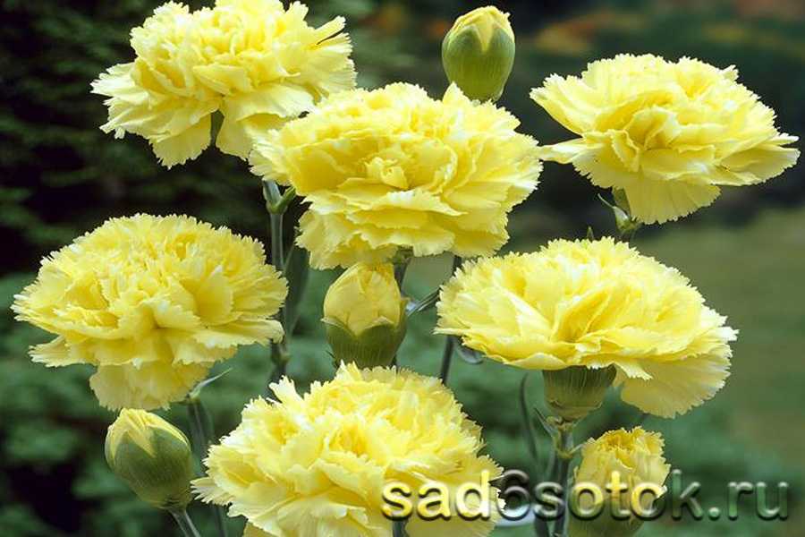 Очень красивый радостный сорт с махровыми золотисто-желтыми цветами диаметром 5–6 см, источающими нежный аромат. Один куст за сезон формирует около 20 цветков. Растения высотой до 50 см, с прямостоячими побегами, пригодными для среза. Цветение длительное – с июня по октябрь. По осени гвоздику выкапывают, высаживают в вазоны и украшают холодные веранды.