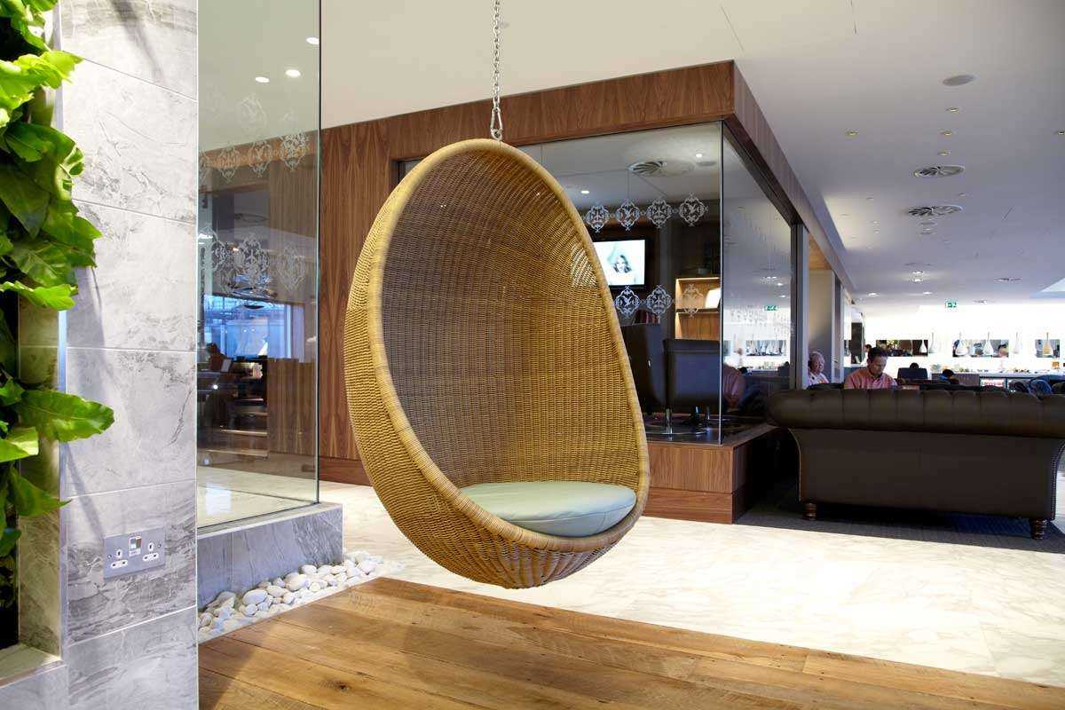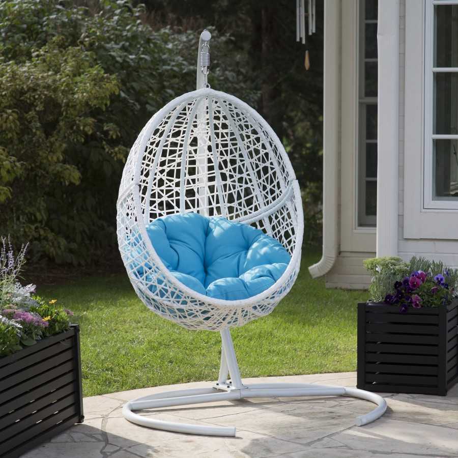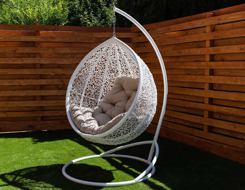 Фото: плетеное подвесное кресло в форме яйца – комфортное место для чтения книг на свежем воздухе
