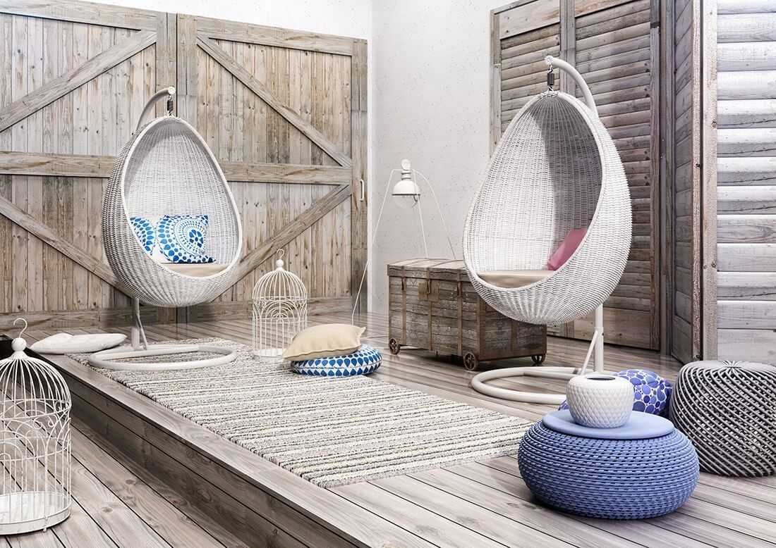 - для средиземноморских интерьеров люди отдают предпочтение плетеным конструкциям.