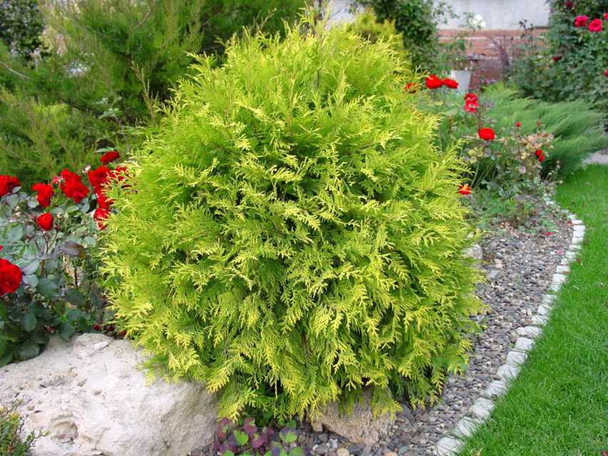 Западная туя «Глобоза» обычно высаживается в больших композициях