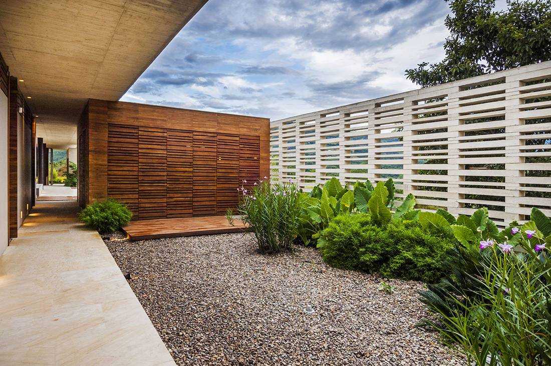 — Стиль минимализм. Дизайн двора в этом стиле предусматривает очень тонкие линии, поэтому лучше всего использовать керамогранит под мрамор для оформления патио, низко стричь газонную траву и выбирать низкую мебель с изысканными формами. Нейтральная цветовая гамма, составленная из природных каменных и песчаных оттенков с добавлением белого и черного должна использовать как в отделке, так и в мебели. Сад в стиле минимализм лучше всего смотрится при доме с панорамным остеклением.