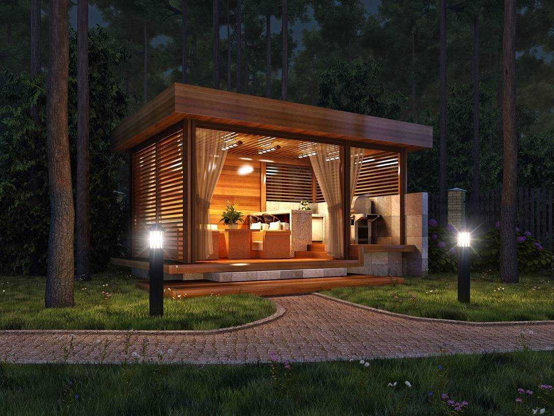 Продумайте освещение, так как вечером беседка должна превратиться в главный объект на вашем участке. Используйте светодиодную ленту для украшения стен, встроенные светильники и фонари.