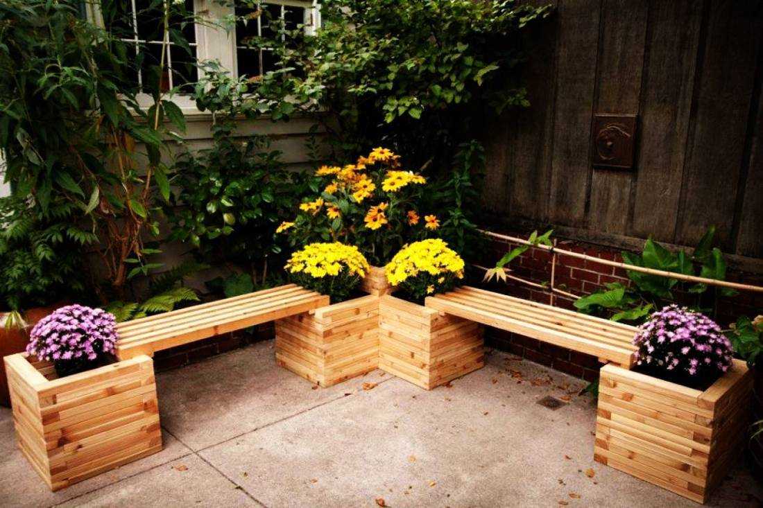 При благоустройстве миниатюрных дачных дворов можно ограничиться небольшими лавочками (особенно эффектно смотрятся кованые скамейки), столом и стульями, окруженными декоративными растениями.