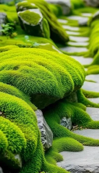 Окантуйте дорожки и водоемы мхом, создавая плавные переходы и природные границы. Используйте мох для зонирования участка, выделяя отдельные зоны отдыха или декоративные композиции. Попробуйте озеленение крыш мхом – это экологичное и красивое решение. Мох как барьерное растение вдоль садовых дорожек – практично и эстетично.