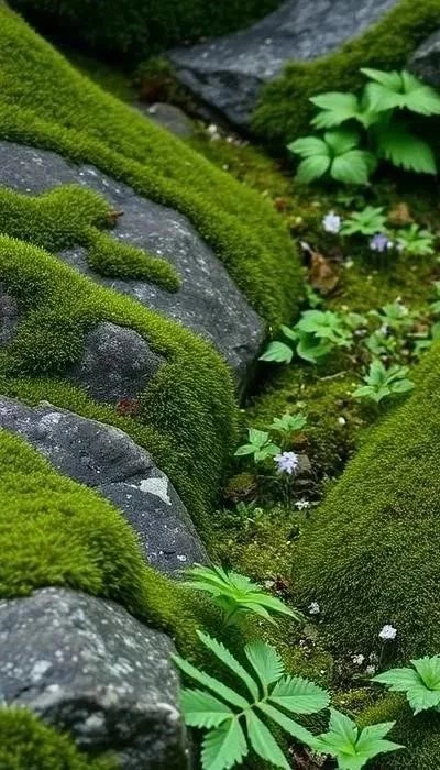 Создайте мшистый газон – мягкое, пружинистое покрытие, альтернативное траве. Оформите альпинарий или рокарий, используя мох для заполнения промежутков между камнями. Декорируйте камни и пни, придавая им сказочный вид. Создайте мшистые панно и картины, используя различные виды мха для текстуры и цвета.