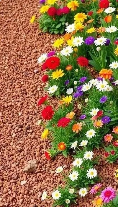 Для ярких клумб подойдут цветные варианты щебня – красный, желтый, зеленый. Важно учитывать сочетаемость цветов щебня и цветов растений. Например, красный щебень хорошо смотрится с растениями с зеленой листвой, а желтый – с фиолетовыми и синими.