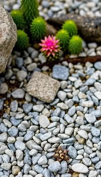 Комбинирование окатанного и колотого щебня позволяет создать интересные текстурные эффекты и зонировать пространство. Учитывайте эти нюансы при планировании дизайна.