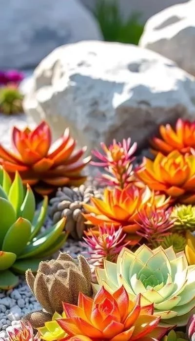 Рокарии и альпинарии: Суккуленты идеально подходят для создания каменных садов, имитирующих горные ландшафты. Сочетайте их с камнями, гравием и другими засухоустойчивыми растениями. Мозаичные клумбы: Используйте различные виды суккулентов для создания ярких и оригинальных узоров на клумбах. Это отличный способ проявить свою креативность!