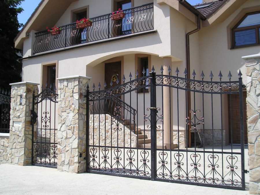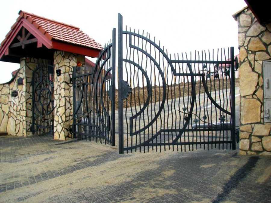 Кованые ворота и калитки относятся к элементам ландшафтного дизайна. Независимо от вида ограды они способны самостоятельно украсить любой участок. Вход во двор умелые мастера превращают в произведение искусства. Рисунок ворот может повторять узор на заборе и представлять единое целое со всей оградой. Если на полотне ограды нет сложных деталей, ворота выступают самостоятельным элементом декора.