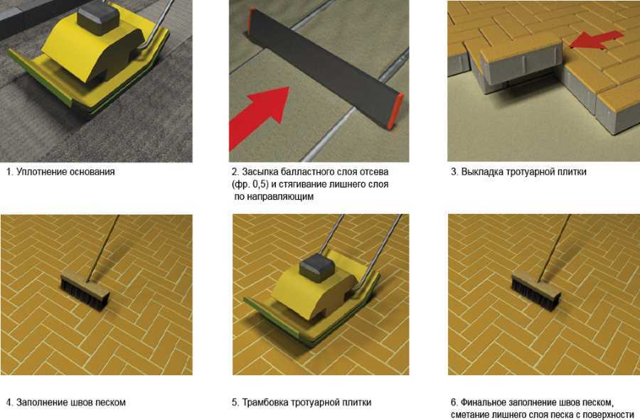 При его применении быстрая укладка осуществляется посредством виброплиты, оснащенной специальной демпфирующей прокладкой. Этот способ, позволяющий не тратить силы на трамбовку каждого элемента, будет рассмотрен как основной.
