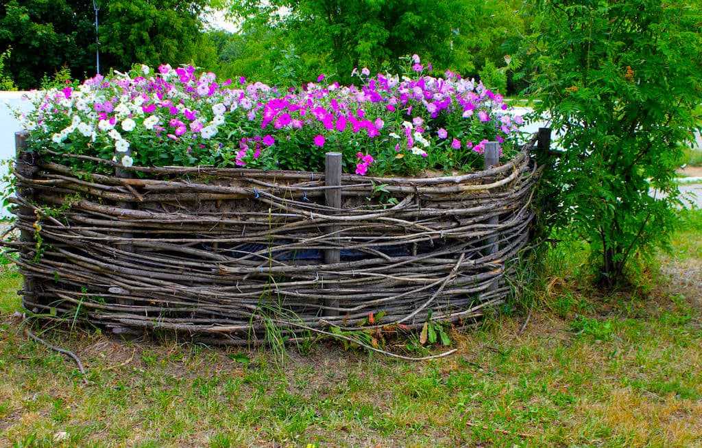 Чтобы украсить приусадебный участок, совсем не обязательно тратить много денег, можно обустроить на нем плетеную клумбу для цветов