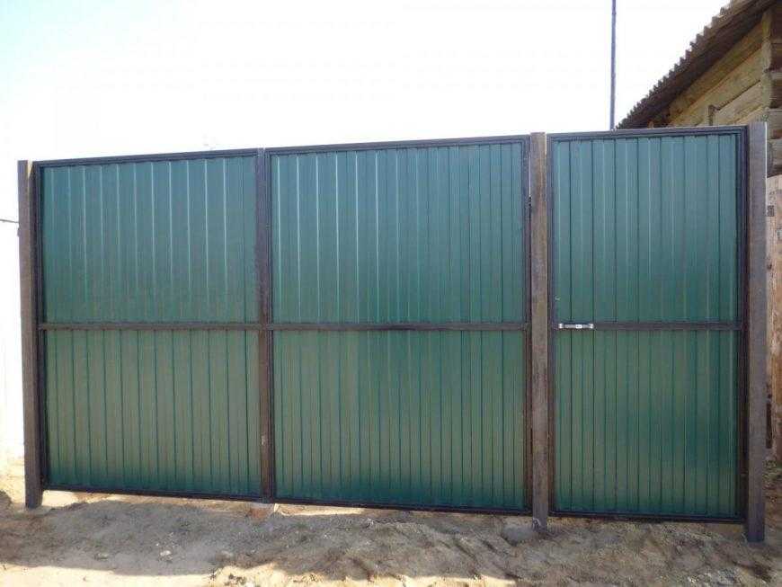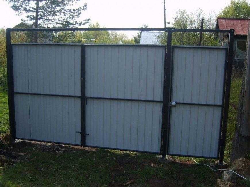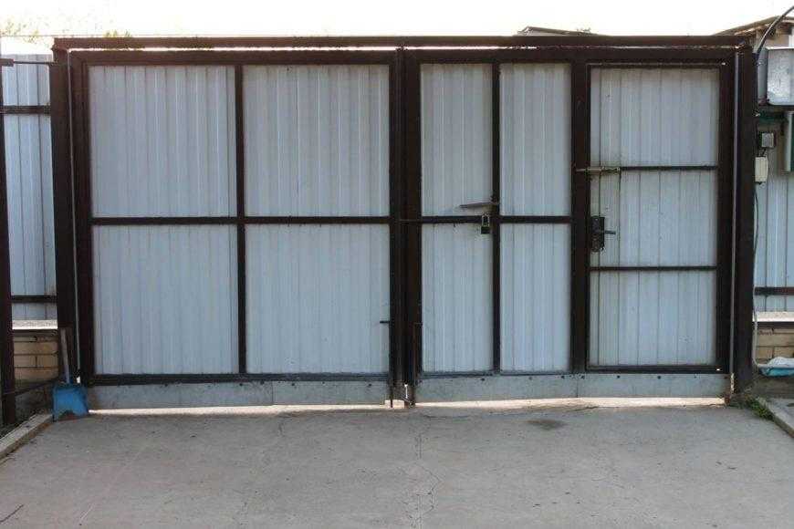 По конструктивным особенностям различают двуполые и одностворчатые ворота. Зачастую в гаражах, ангарах и складах используют комбинированный вариант — с двумя створками и калиткой. Так существенно экономится территория и материалы для устройства отдельного входа.