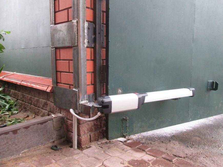 Если створки ворот долгое время пребывают в распахнутом виде, может случиться перекос опорных столбов. Чтобы этого не произошло, необходимо подумать о защите. Она представляет собой прочный клин, который нужно вбить между землей и краем открытой створки.