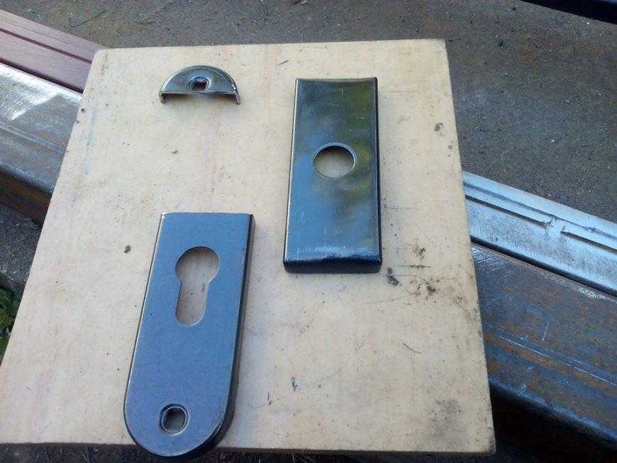 - Под навесной замок необходимо приварить ушки. Они располагаются по центру конструкции.