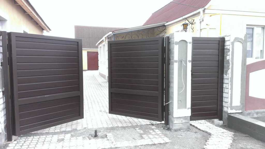 - размеры и конфигурацию придомового участка: просторному участку подойдут двустворчатые распашные ворота, узкому и длинному – одностворчатые;