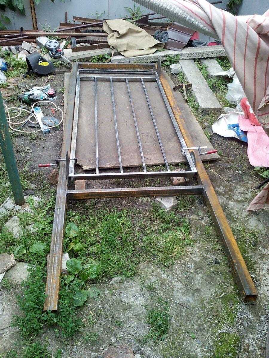 - 2) Делается каркас калитки из труб. Сварка его частей осуществляется отдельно от общей конструкции каркаса воротного полотна. Высота калитки должна быть такой, чтобы она могла вписаться в общее полотно и была удобной для использования, а ширина может варьироваться от 80 см до 1 метра.