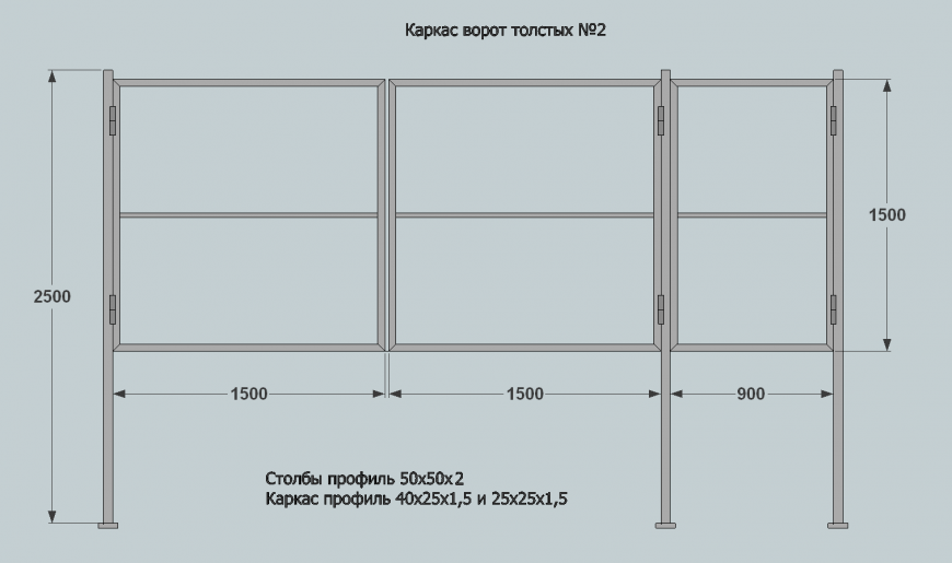 - Рамы в закрытом положении образуют прямоугольник. Внутри крепят элементы жесткости. Это профильные трубы меньшего сечения, например, 40 на 25 мм. Они могут располагаться по-разному, поэтому и делается чертеж или схема распашных ворот. Обычно элементы жесткости располагают по диагонали, в закрытом положении створок они образуют ромб. Так по центру крепят и горизонтально расположенную трубу.
