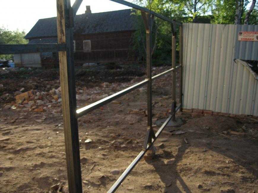 - Устанавливаются опоры (принцип установки точно такой же, как и при установке столбов для ворот).