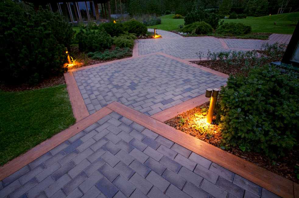 Эффектно смотрится освещенная или подсвеченная дорожка. Современные светодиодные подсветки безопасны. Они потребляют мало энергии, создают романтическую атмосферу ночного сада и позволяют безопасно путешествовать по участку. Освещение требует прокладки электрического кабеля. Его закладывают на безопасную глубину в специальном гофрированном шланге-предохранителе от повреждений.