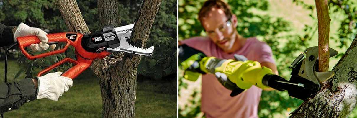 Ручной и бензиновый сучкорез можно использовать как в ясную, так и в дождливую погоду. Электрический инструмент «боится» влаги, поэтому он не является всепогодным.