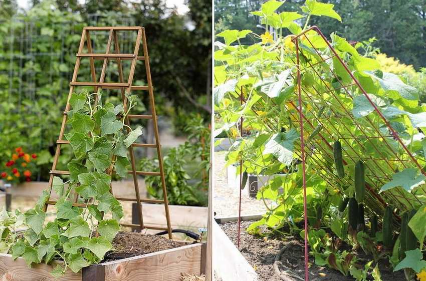 При таком многообразии шпалер для огурцов каждый сможет выбрать и сконструировать опору на свой вкус, которая не только поможет в выращивании огурцов, но и хорошо подойдет к ландшафту и украсит дачный участок.